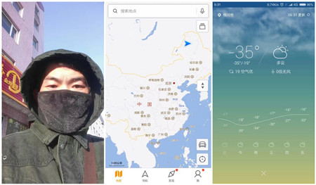 目的地居然是個(gè)連站臺(tái)都沒有的火車站,對(duì)得起“中冷”這四個(gè)字。下了火車瞬間感覺整個(gè)空氣都凍結(jié)了,吸口氣鼻子僵了,眨個(gè)眼睫毛凍了,喝口水成吃碎冰了。手機(jī)定格在“-35℃/-19℃”,天然大冰箱,我來(lái)了!