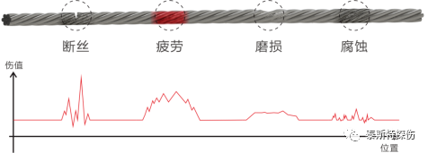 依據(jù)模式識別軟件判別鋼絲繩內、外部疲勞、銹蝕、磨損及斷絲等損傷類型。