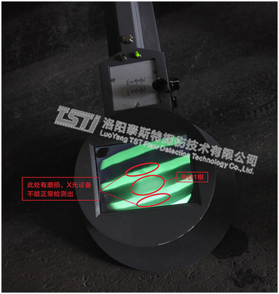 由于該礦對輸送帶鋼繩芯檢測設(shè)備的概念和認識局限于他們之前采購使用但直不滿意的X光手持檢測設(shè)備(客戶反映X光設(shè)備僅僅只能檢測斷絲,而且設(shè)備笨重檢測率低下且對使用人員有危害,維護人員為排斥)。TST磁技術(shù)的輸送帶鋼繩芯在線自動監(jiān)測系統(tǒng)對該礦維護人員來說既新奇又疑慮。為了讓該礦客戶對TST設(shè)備的性能有個直觀震撼的認識,我公司主動要求在現(xiàn)場與X光檢測設(shè)備驗傷比試。